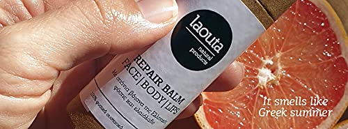 Laouta Repair Balm - Face Body Lips - 1.7 oz (1.7 oz) Have fun in the sun without fear thanks to Laouta’s Repair Balm! This easy-to-apply lotion stick goes on super smooth without leaving a greasy residue. The moisturizing blend softens skin to help offer relief to chapped, dry, cracked skin. You can use it on your face, body and even chapped lips! Gentle soothing ingredients make this balm great for use on even the most sensitive skin.